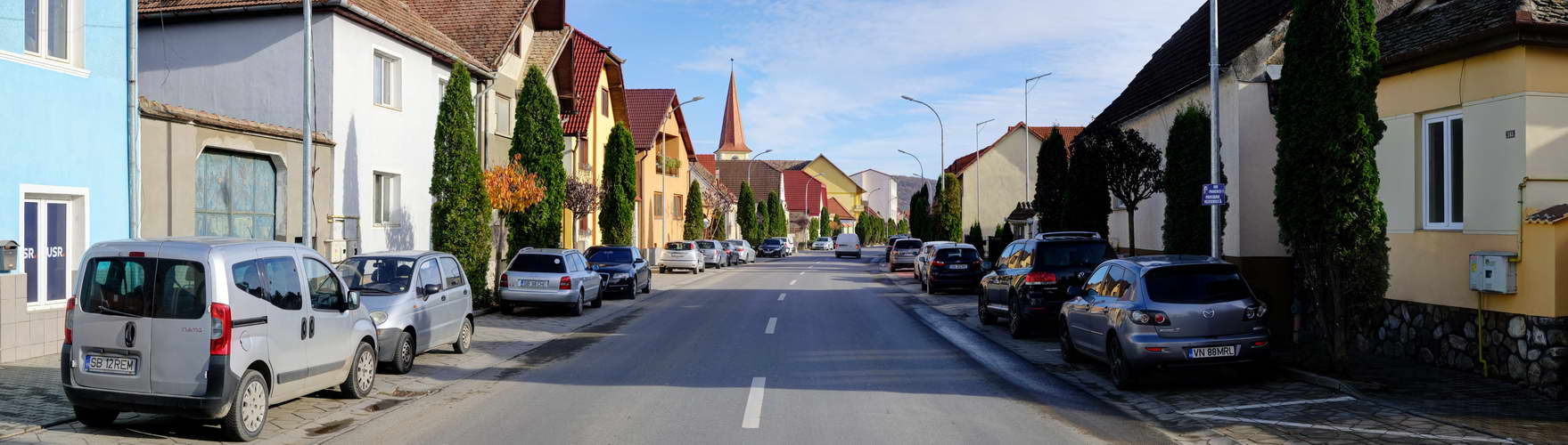 Schellenberg ist eine ehemals sächsische Gemeinde des Hermannstädter Kapitels, mit einer romanischen Kirche aus dem 13. Jh. mit Ringmauer und 1809 erneuertem Turm in der Dorfmitte. 1577 wurde der Warenumschlagplatz für fremde Kaufleute der Route Roter-Turm-Pass von Talmesch nach Schellenberg verlegt. Die Gemeinde wurde einige Male verwüstet. 1599 besiegte hier Michael der Tapfere den Fürsten von Siebenbürgen, womit er die kurzzeitige Vereinigung der drei heutigen Landesteile Rumäniens einleitete. Nach der Wende hat sich Hermannstadt zum beliebten Standort für zahlreiche ausländische Investoren etabliert. Die Straßendorf-Anlage Schellenbergs bot dafür die nötigen Wachstums-Freiräume. Auf Schellenberger Gemeinde-Areal nördlich der Kronstädter Chaussee, hinter den Gemüsegärten gegenüber der Mall, die ihrerseits die Steuervorteile des Schellenberger Standorts nutzt, entstehen kleinteilige höhenbegrenzte Wohnanlagen von gediegenen Ein- und Mehrfamilienhäusern. Entlang der bis zum Bahngleis geführten Pictor-Brana-Straße entstehen Eigentumswohnungen, für die mit allen Vorteilen von Stadtnähe und Dorfidylle geworben wird.